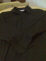 My current assignment for college is to embellish a recycled garment either something we already had at home or buy something from an op shop. The embellishment has to be something we’ve learnt in the course so far – hand embroidery, freestyle machine embroidery, couching, sandwich fabric, or machine embroidery on solvie disolvable plastic and attaching this to a garment. I’ve bought two garments a rather hideous maroon top and a nice black long sleeved plain shirt. The maroon top has potential but it is the riskier of the two options as I would need to pull it apart and remove the parts I don’t like, embellish it and remake it. I don’t know that I can do all that yet. The black shirt would be much more straight forward to embroider or overlay couching or something like that on the cuffs, down the front or around the bottom. I think we’re required to spend a minimum of 25 hours on it, I’ll have to check that. If I’ve got the time and the maroon top goes okay I might do both of these. This is for my Cert II in Visual Arts and Contemporary Craft-Textiles.