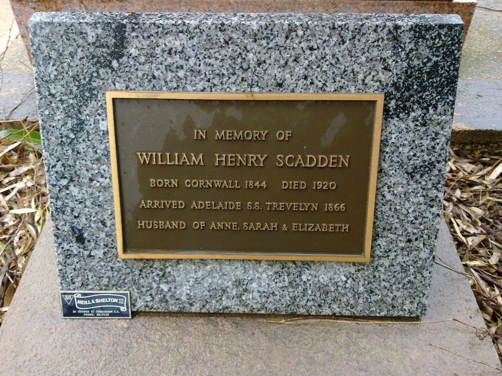 William Henry Jnr and Alfred John Scadden were born in Cornwall and the family came to South Australia 21 Mar 1866 on board the Trevelyan.