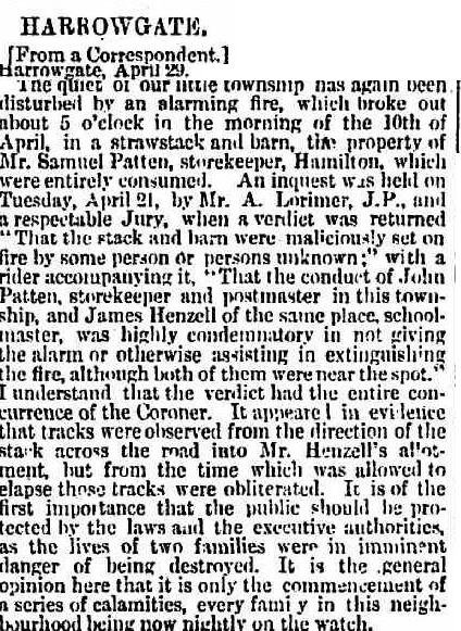 Ellen, John and family must have moved to Woodside shortly after their marriage as this newspaper advertisement in November 1867 is seeking tenants for Harrowgate Store and Post Office. The contact person is John Patten of Woodside.