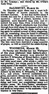 Ellen and John’s first child, Alfred John Patten, was born in Woodside, South Australia in 1868. Woodside is a lovely town in the Adelaide Hills now, but how was it for Ellen back then? She now has a large family and is living in the country instead of the city she’d become accustomed to.
